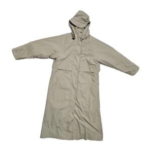 VINTAGE Womens L.L. Bean Duster Trench Coat Wool Liner Hood Beige Small Petite