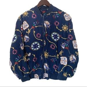 VINTAGE | Women’s Navy Nautical Bomber Windbreaker Zip Up Jacket | Size XL