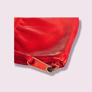 Nice retro red leather clutch bag, great size in very good pre-owned conditions. There is wear on the zipper tab and some signs of wear on the lining. Not rips or stains.