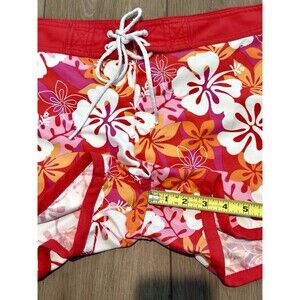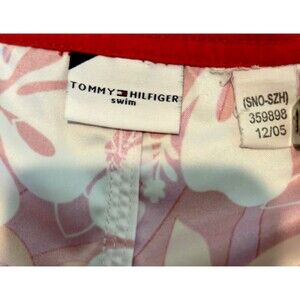 Vintage women's Tommy Hilfiger swim shorts in size L, featuring a red floral retro design from the Y2K era. #Y2K #RETRO