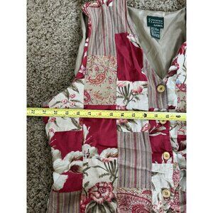 VINTAGE Womens Vest Patchwork Floral Striped Cottage Prairie Peasant Academia L