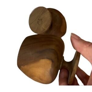 Add a touch of vintage charm to your collection with this set of four hand-carved mini goblets/chalices in a beautiful brown wood finish. Each piece is an original and handmade in Spain, making them a unique addition to your barware collection. They are marked V on the bottom. They are in excellent condition and will add a great Midcentury touch to your Barware. They measure 3” tall. Great for bourbon or cocktails. Perfect for entertaining guests or as a decorative piece, these goblets are sure to impress.