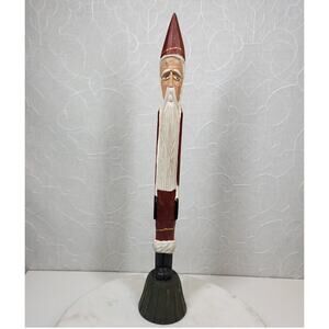 VINTAGE Wooden Pencil Santa Claus 19.5" Tall Rustic Christmas Holiday Figurine