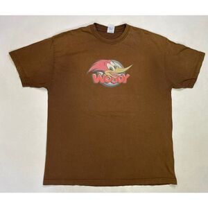 VINTAGE Woody Woodpecker Graphic T-shirt Men XL Brown Short Sleeve Faded