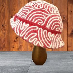 VINTAGE Wool Angora Bucket Hat Gatsby Flapper Costume Grandma Core Red Embroider