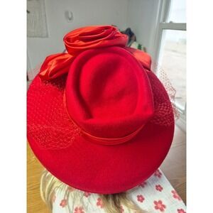 VINTAGE Wool Felt wide rim hat granny Red Hat Society Church Fancy Hat