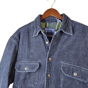 VINTAGE World Island Blue Corduroy Lined Shirt Jacket | Men's Large