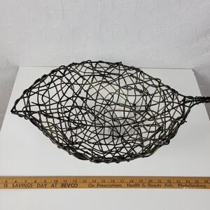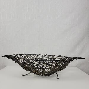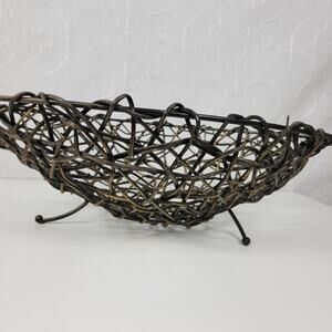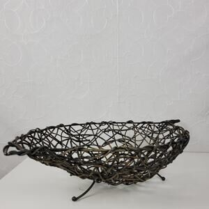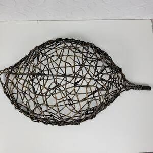 VINTAGE Woven Twisted Vine Leaf Shaped Bowl Basket Table Centerpiece Footed Rare