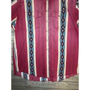 VINTAGE Wrangler Aztec Button Down Shirt Adult XXL Tall Red Western Pockets Mens