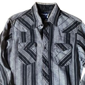 VTG Wrangler Pearl Snap Western Flannel Shirt X-Long Tails