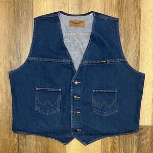 VINTAGE Wrangler Vest Blue Denim Western Cowboy 70s Made USA Mens Size XXL Rodeo