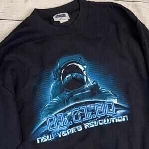 VINTAGE Y2K 01.01.00 New Years Revolution Crewneck Sweatshirt Black Blue Large