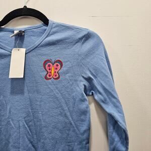 VINTAGE Y2K 2000s NEW with tag Old Navy Girls Long Sleeve Top Blue Butterfly 14