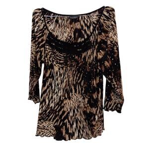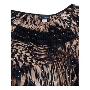 VINTAGE Y2K 90s Blouse Top Beaded Accordion Pleat M/L Animal Whimsigoth Babydoll