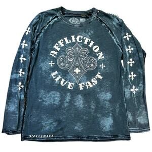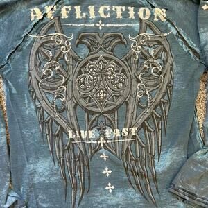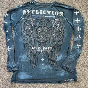 Nothing says Y2K like a Vintage Affliction Winged Up Tee, Jesse Pinkman Style. Cross Cyber Goth Style Graphic Long Sleeve T-Shirt!