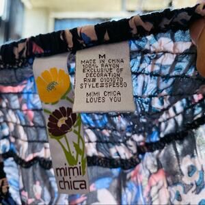 VINTAGE Y2K Black Cream Floral Mini Skirt High Or Low Rise Elastic Loose Flowy M