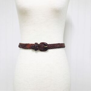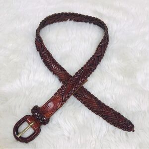 VINTAGE Y2K Brown Braided Genuine Leather Belt Woven Whiskey Cognac Size XS XXS