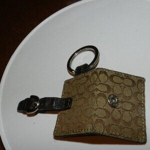 SIGNATURE C JACQUARD & Leather Snap Closure. Attached Silver Key Ring 1.25" L x 2" H - 3 1/2" L with key ring
