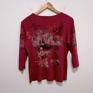 VINTAGE Y2K Christopher & Banks Hong Kong Graphic 3/4 Sleeve Shirt. Size M