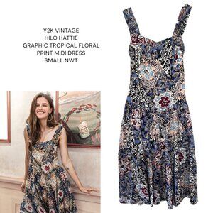 VINTAGE Y2K DEADSTOCK HILO HATTIE BOHO FLORAL MIDI DRESS SMALL NWT
