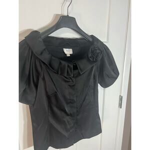 VINTAGE Y2K ECI NEW YORK BLOUSE | WOMENS BLACK SILK FORMAL BLAZER | SIZE 6