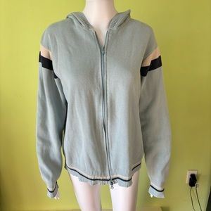 VINTAGE Y2K GAP BABY BLUE ZIP UP RIBBED EDGE STRIPE ACCENT HOODIE SIZE LARGE