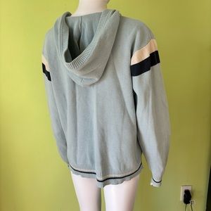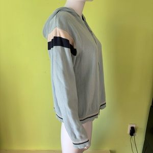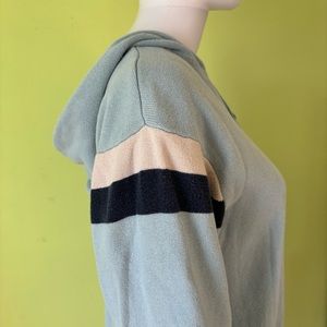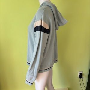 VINTAGE Y2K GAP BABY BLUE ZIP UP RIBBED EDGE STRIPE ACCENT HOODIE SIZE LARGE yellow stain on hood pictured sold as is rare!