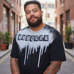 VINTAGE Y2K HUSTLER BRAND Old School Tee 2X XXL Grafitti Paint Drip Hip Hop