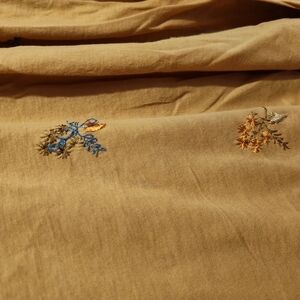 I bought it in 2006, and it is in EXCELLENT CONDITION. It fits close, but is comfortable. Semi-shear, tissue-like material. All the embroidery is intact.