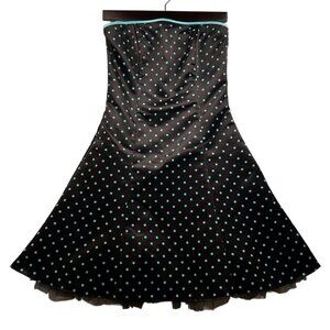 This rare mid-2000s Jessica McClintock party dress captures vintage glam with a playful polka dot twist. The aqua trim and structured bodice, paired with a flirty tulle underlayer, make it perfect for twirling at a summer event, prom, or photoshoot. MADE IN USA adds collectible value!