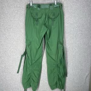 Miss Me, cargo pants, Y2K style, adjustable waist, vintage pants, women's size large, green pants, utility pants, drawstring ankle, wide leg