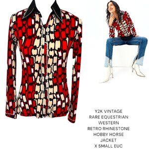 VINTAGE Y2K RARE EQUESTRIAN HOBBY HORSE WESTERN RETRO RHINESTONE TOP XSMALL #7
