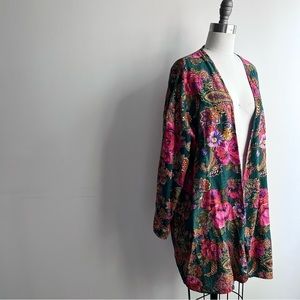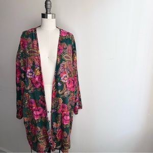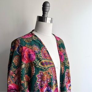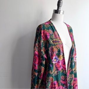 ( lingerie, robe, kimono, cover up, mini dress, wrap dress, boho, bohemian, long sleeve, paisley, satin, metallic, boudoir, festival, date night, green, pink, fuchsia, cottagecore, gypsy, 90s, 1990s, nightgown)