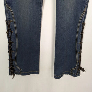 VINTAGE Y2K Single sz. 10 Lace Up Hem Flare Bell Bottom Jeans Bratz Spice Girls