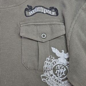 VINTAGE Y2K SouthPole Olive Green Waffle Knit Thermal Military Eagle Top Medium