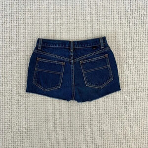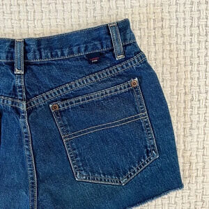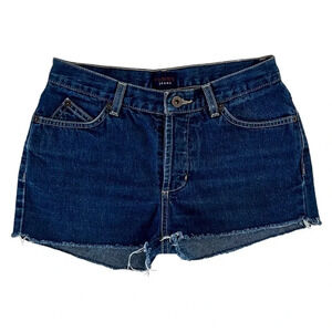 darker mid wash mid rise cut off jean shorts with a hidden button fly from 2000