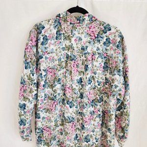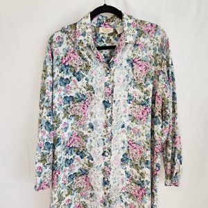 VINTAGE Victoria's Secret Gold Label White/ Multicolor Floral Button Down Dress/Nightgown Size M/L RN 54867.