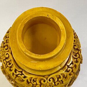 VINTAGE YELLOW Hand Carved Chinese Lidded Jar