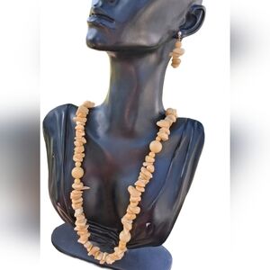 VINTAGE YELLOW JASPER NECKLACE & EARRINGS SET BOHO NATURAL STONE JEWELRY