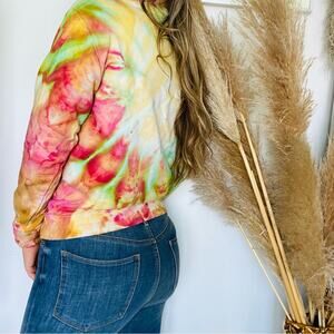 VINTAGE. Yellow Pink Green Rainbow Tie Dye Crew Neck Pullover Sweater Sweatshirt
