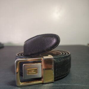 VINTAGE Yves Saint Laurent YSL Belt 42.5" 1" Black Leather Reversible Buckle