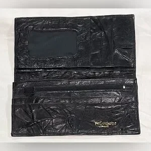 VINTAGE Yves Saint Laurent YSL Calf Leather Crinkle Bifold Wallet Antique Rare