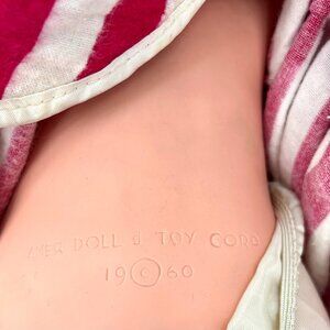 Minor wear on fabric and slight discoloration on legs, very faint yellow spots on front of pj's (hardly noticeable) and part of elastic on hat has separated from hat. Overall, still in great vintage condition! Color(s) may vary slightly in pictures but are as close as possible.