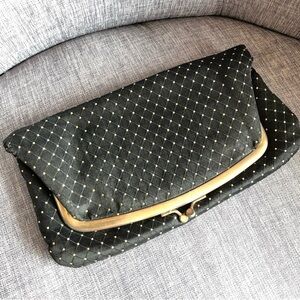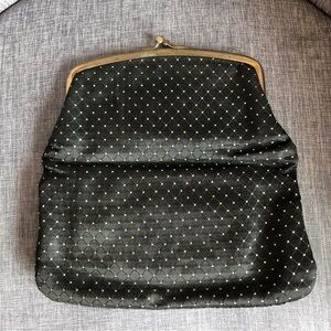 VINTAGE black satin gold polka dot handbag clutch