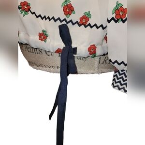 The chevron flower pattern, ribbon drawstring waist and wide collar will give you an irresistibly retro look.