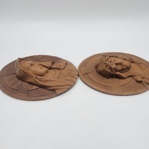 VINTAGE brown resin Jesus and Virgin Mary wall plaque