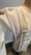 Lots of details - flower embroidery, satin ribbon, cable knit texture, scalloped neckline, little pompom florette