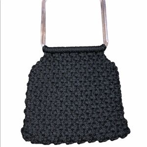 VINTAGE crochet knit square bag w/acrylic handles