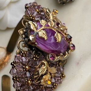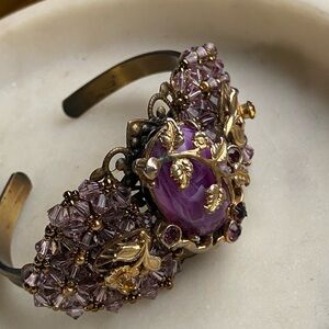 VINTAGE embellished cuff bracelet with purple beads or stones