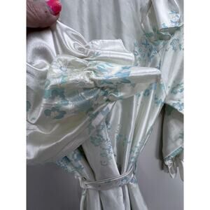 VINTAGE floral cream blue robe peignoir women's size medium 12 14